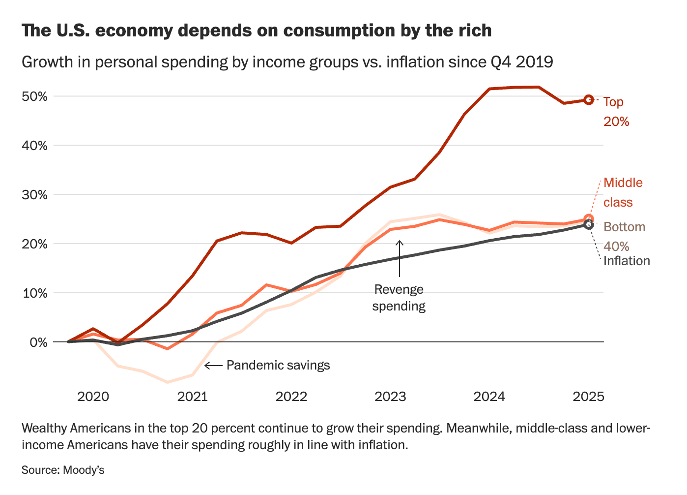 “In the first half of 2025, spending on A.I. was as big of a contributor to growth in this country as consumption. There’s a lot of risk to an economy that is so heavily reliant on this A.I. boom and the rich. And there could be some pullback. If your chair has fewer and fewer legs to stand on, it’s a lot easier to knock that over.”